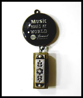 | 1960's key chain fob with a Mini 3 hole Harmonica. |